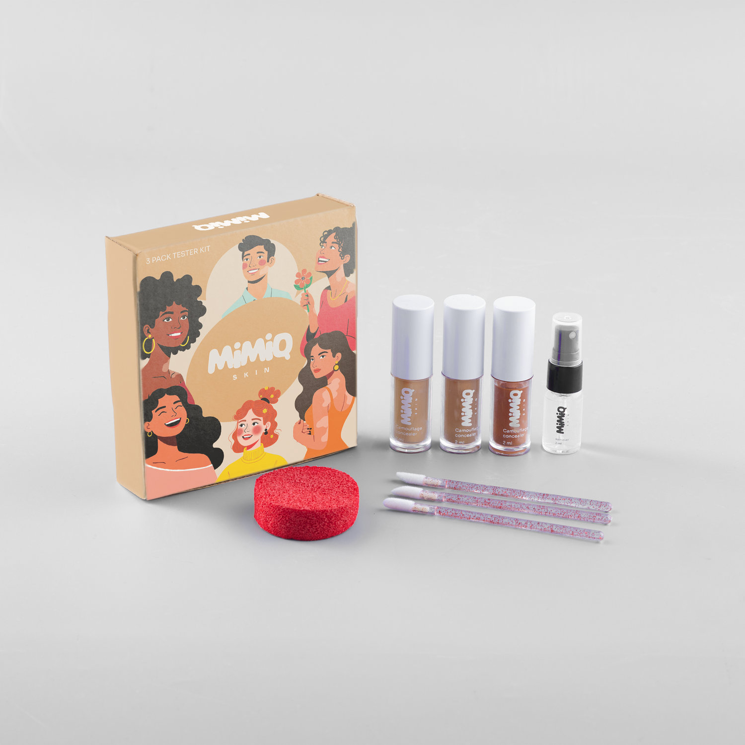 Made for the curious, the cautious, and the just-can’t-decide-yet crew, MIMIQ’s mini kit brings you travel-sized versions of our concealer (in 3 versatile shades), remover, a soft makeup sponge, and 3 lip gloss sticks. Everything you need to test, blend, build or simply play.